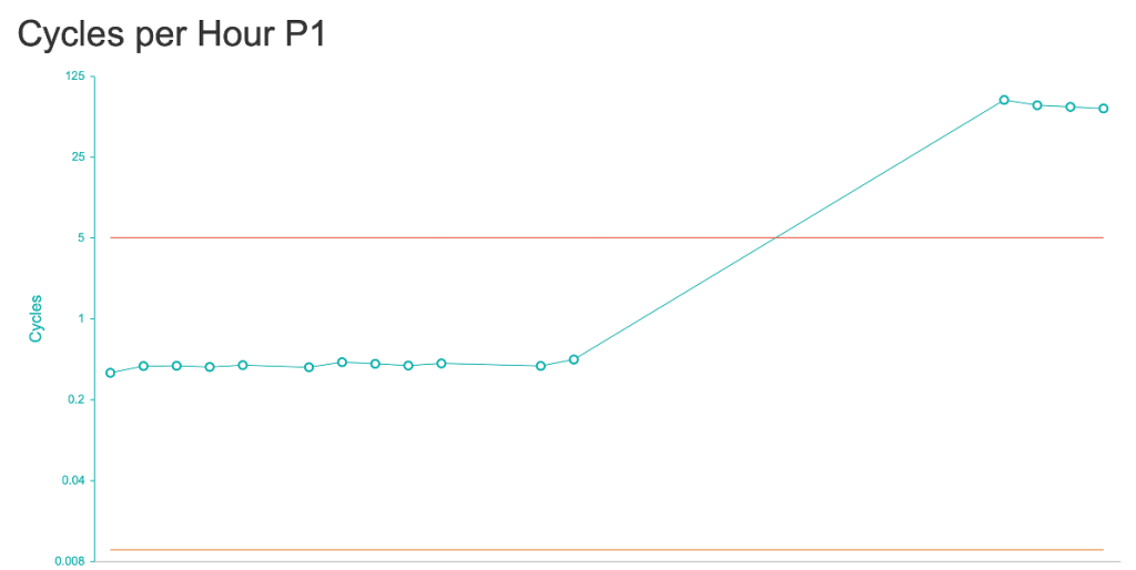 Drilling down on the cycles per hour increase led us to believe that there was a potential problem with either the pump or an issue with the pump chamber. An engineer’s visit was advised for immediate action.