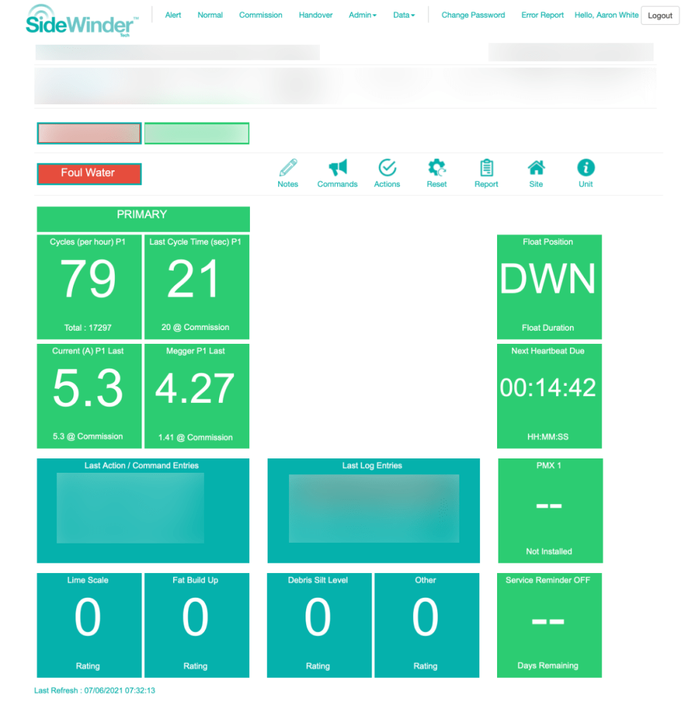 A high level alarm sounded on the client’s foul water pump station and continued to remain up whilst we liaised with the client onsite. The client was advised to mute the alarm but couldn’t as she was away from the property – we did this remotely via the SideWinder system to avoid it sounding further.
